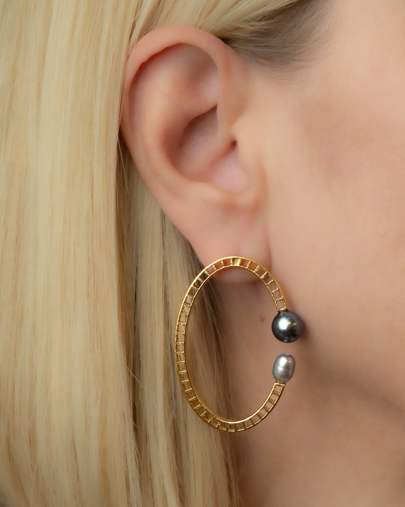 Χειροποίητα σκουλαρίκια σε επιχρυσωμένο ασήμι 925 με γκρι και μαύρα μαργαριτάρια