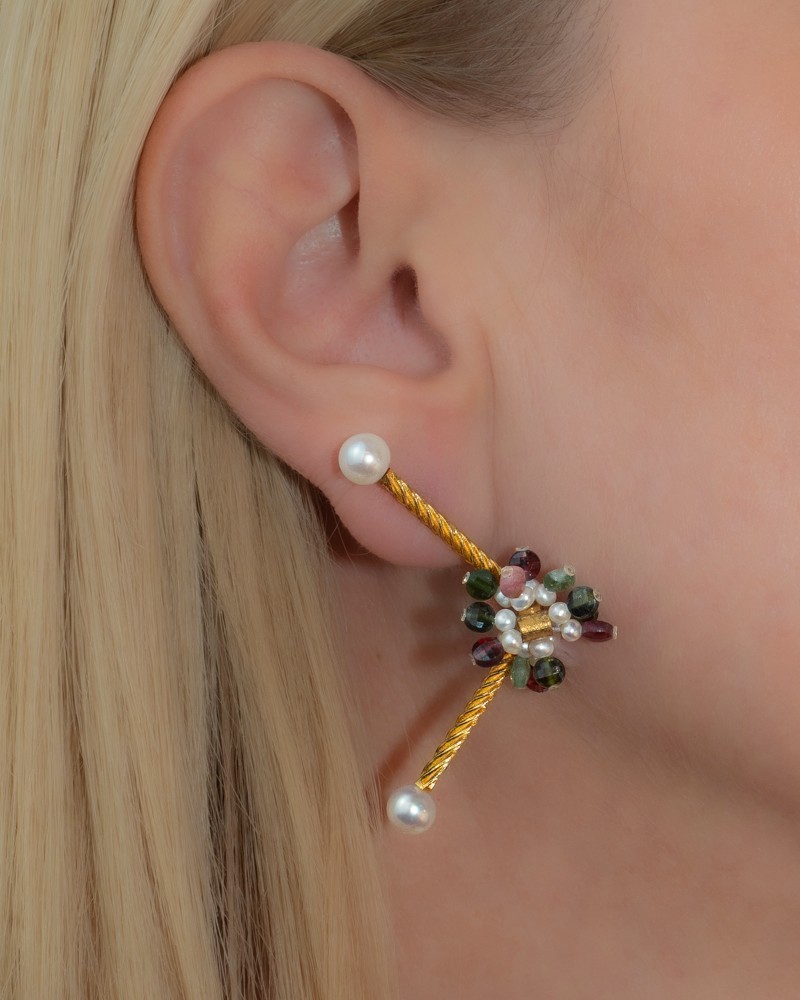 Χειροποίητα σκουλαρίκια σε επιχρυσωμένο ασήμι 925 με τουρμαλίνες και λευκά μαργαριτάρια